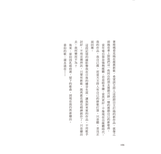 這段記憶的確影響我在日後的播音生涯,讓我對來賓的作品,不用歌手討好,不用宣傳拜託,只要有新歌,既然都花錢花精神創作了,只是播出去,我何樂而不為?