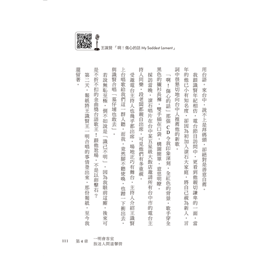 認識我的人,會讀得津津有味,書中文章跟我的廣播節目很像,有啥說啥,有啥寫啥,算是我的前傳,心肌梗塞病危那段人生經驗,則輕輕帶過。
