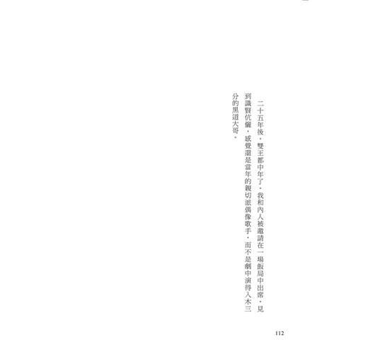 二十五年後,雙王都中年了,我和內人被邀請在一場飯局中出席,見到識賢伉儷,感覺還是當年的親切派偶像歌手,而不是劇中演得入木三分的黑道大哥。