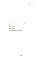 本書收錄二十二首詩作,內容包含作者跨海參加國際詩歌節的所見、所思的風土人情,在〈禮讚安地斯山脈〉中以「偉大傲岸的安地斯山脈呀!/古文明的歌聲與節奏/在日日咀嚼古柯葉的齒縫裡/不斷向神的詩句致意」,精彩描寫了異國風景的壯闊與歷史;書中同時也涵蓋個人生活情思的紀錄,在〈最後一眼〉中透過「為了看看媽媽/撐著的傘/一路抵擋強力海風的吹折/為了摸摸媽媽的鼻息/無情的雨/打向我急走而汗濕的衣衫」詩句,深刻表現對母親的愛。