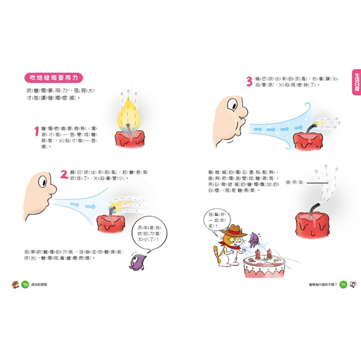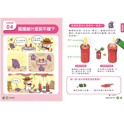 以漫畫勾勒生活中的真實情境,挑起孩子大大的好奇心,進而引發疑問、帶出科學問題。