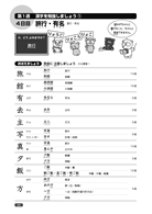 本書左頁以插圖形式提出問題,在進入課程前先自我測試,右頁同樣再以有趣的插圖,幫助學習者確認漢字和語彙的用法、意義或字形。