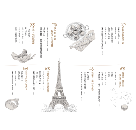 在這本書裡,一則則有趣的親子對話、軼事,經過編排,投射出曉妍的價值觀和教養,不是原則教條,而是顯露在對話裡、互動中,還有睡前的故事時光。加上葉丙成老師的提點後設、統整思考、歸納總結、跳躍提升,我們得以看見身教、金錢觀、審美觀、夢想與天賦、閱讀與自主學習、因材施教這些教養的大題目,如何具體呈現在這三個孩子的家庭裡,以及背後的深層思考。