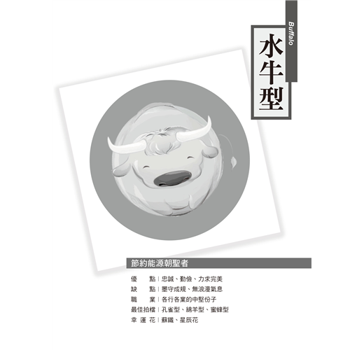 因此,若你有個水牛型的老公,你在情人節或結婚紀念日收到的禮物,可能會是一個功能良好的電器用品,但卻不是他眼中不切實際的鮮花、寶石。