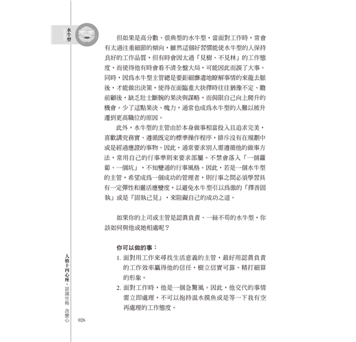 如果你的上司或主管是認真負責、一絲不苟的水牛型,你該如何與他或她相處呢?