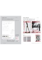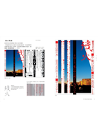 ① 橫向、縱向的文字排版和紅、白、黑三色,展示出版面資訊的層次。根據設計概念,文字集中在版面上部,代表著「地面」;版面下部則呈現文物。