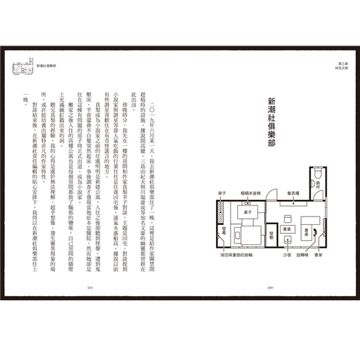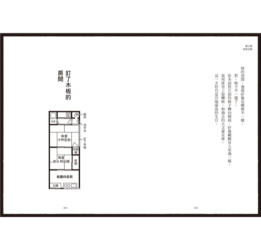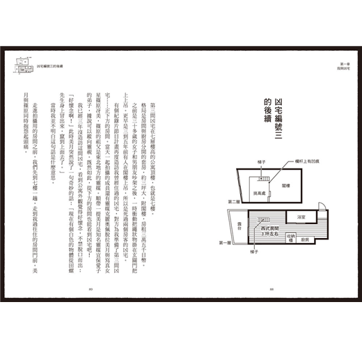 大家請在安全的家中,在安全的格局中閱讀本書。本書收錄的不過是我淡淡寫下與大家住處沒什麼兩樣的房子裡所發生的事,把在平凡無奇的格局裡體驗到的故事告訴大家。當大家讀著讀著也開始覺得自己家好可怕時,本書才稱得上大功告成。