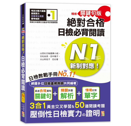 放心! 不管是考前半年或是考前一個月,《精修關鍵句版-新制對應絕對合格!日檢必背閱讀N1》帶您揮別過去所有資訊不完整的閱讀教材,磨亮您的日檢實力,不再擔心不知道怎麼準備閱讀考試,更不用煩惱來不及完成測驗!