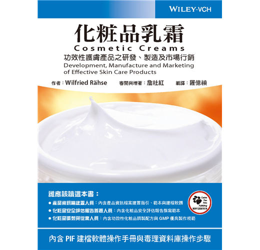 《化粧品乳霜:功效性護膚產品之研發、製造及市場行銷》將重點放在化粧品乳霜的組成結構與配方、生產過程、每種成分的功效,以及安全性考量。本書內容相當全面,包含化粧品的基本定義,並描述目前市面上皮膚乳霜的類型、最常被使用的主要成分以及組成範例。作者Wilfried Rähse是這領域的知名專家,他提供了估算製造成本的準則,並說明功效性安全評估的流程。