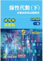 線性代數主要探討線性空間與線性映射的相關性質,是一門重要的基礎數學,各大學理、工、商學系大都將之列為必修,同時也是研究所與公職考試必備的重點科目。本書收錄國內各大學研究所與各系聖經本教材的線性代數試題,為筆者任教二十年的授課教材。書中將線性代數各主題,搭配重點常考題目分類編排,為同學準備研究所升學考試、校內課程輔助學習的最佳工具。