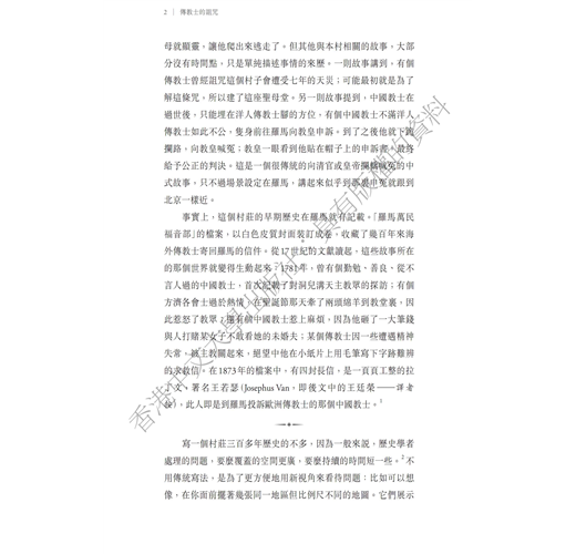 《傳教士的詛咒》以普世性的視野,結合歐洲的情況,講述在外部力量影響下中國的宗教生態如何變遷、借鑒與融合。沈艾娣教授透過山西洞兒溝的案例,為我們提供了遠超出「禮儀之爭」或「文化適應」的視域―從17世紀耶穌會傳教開始,天主教就適應了中國傳統文化,只不過中外傳教士、教眾及羅馬教廷,在各種衝突和妥協中無意地形成一股合力,試圖把本地教會拉到全球發展的潮流中,而這個進程一直延續至今。
