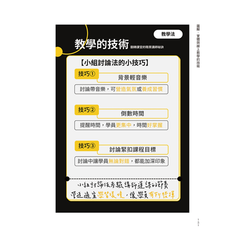 如果你不熟悉「教學的技術」,也請老師不要驚慌,你可以一次只用一個技術:先用互動教學技術,再慢慢導入分組團隊及討論,最後才嘗試融入遊戲化。只要多用幾次,多做幾次,技巧就會越來越熟練,效果當然也會越來越好!