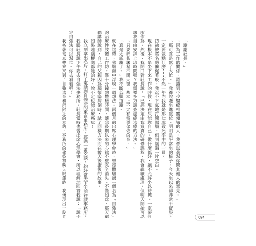 2016年9月,身為人氣心理講師的作者,突然被告知患有肺癌,而且一檢查出來就是最嚴重的第四期。癌細胞已經擴散到淋巴和骨骼,無法進行手術或放射治療。抗癌藥物治療一年生存率約為30%。