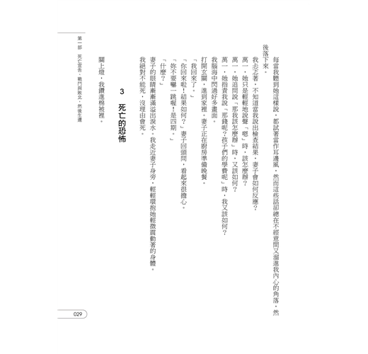 原來,四期的存活率並不似掛川醫師所說的是五年三成,而是不滿一成。事實上,一年的存活率才是三成。原來掛川醫師有顧慮到我的心情啊……