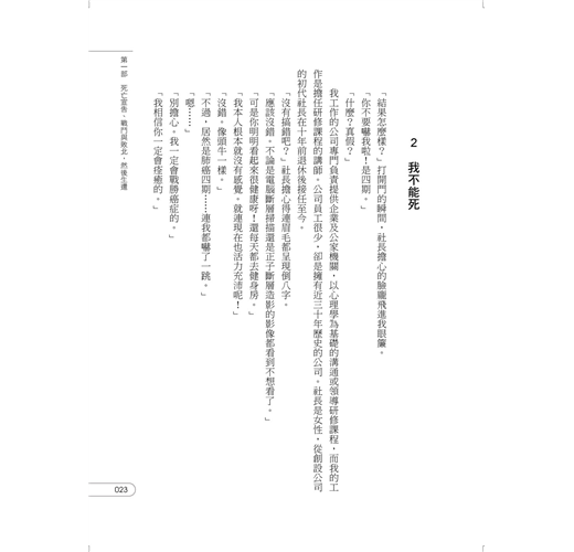「這裡有點……刀根先生會不會覺得背痛呢?」掛川醫師顯得有點語塞地說道。