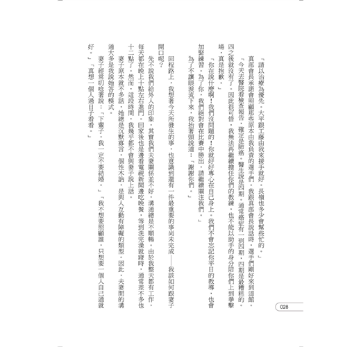 走出診間,經過晦暗的走廊,那裡的陳舊長椅上坐著許多咳得不能自己的人們。「喀喀喀」「咳咳咳咳」毫無止息的咳嗽聲不斷鑽進耳裡。我不禁懷疑,難道大家都是這樣咳嗽的嗎?感覺眼下所見世界只剩下冰冷的單色調,與我未走進診間前,明顯相隔成兩個世界。離開醫院,在搭上電車那一剎那,我失去了原有的沉穩。連按著手機搜尋癌症各階段存活率的指頭都顫抖著。