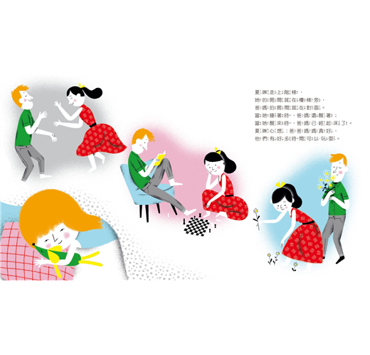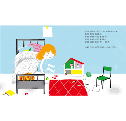 有一天,夏琳起床後自己走出房間,卻發現家裡一個人都沒有,客廳、飯廳……到處都找不到爸爸媽媽的身影,只剩一片寂靜。救命啊!夏琳內心的恐懼被喚醒,就像突然颳起的風一樣,讓她的心緊張得撲通撲通跳,為什麼夏琳會有這種感覺呢?