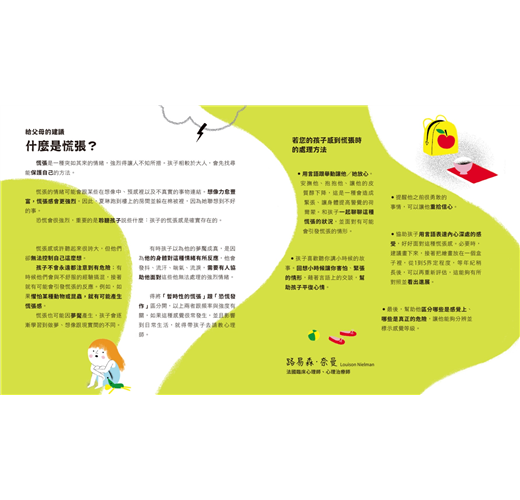 ★本系列作者科奇卡(Kochka)為法國的童書作家,將孩子們日常生活的情境與不同的情緒反應做結合。每本書末皆附上一篇心理師對於該情緒的說明,以及兒童在什麼情況下容易產生此種情緒,提供家長參考,讓爸爸媽媽更了解小小孩的情感反應與表達能力。同時,針對當孩子們在害怕、難過、生氣、嫉妒或缺乏自信時,父母該如何陪伴、引導孩子們度過,或是讓孩子們將情緒穩定下來的方法,作者也提出了簡單而實用的建議說明,適合家長與孩子一起共讀、討論。