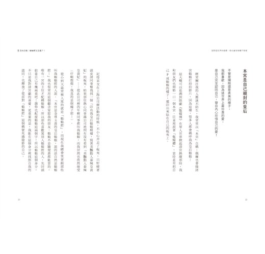 在這個年代,人人都能穿自己想穿的衣服,拍自己想拍的照片,在不傷害他人的情況下,你可以盡情地去成為你想成為的樣子。《如懿傳》裡,周迅有一句經典的台詞:「本宮是皇上親封的皇后!」她雖貴為皇后,卻也只是父權與皇權給予的身分;但對我而言,我告訴自己,「本宮是自己親封的皇后」,就算皇帝也拿不走!這不只是一個稱號,更是期許自己能從以前張揚跋扈的模樣,蛻變成沉穩大方卻無法被動搖的皇后娘娘。