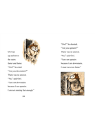 包括〈眼淚茶〉在內,全書共有五段小故事,像是把冬天當成訪客邀請他進門取暖,或是對床尾毯子底下冒出的「奇怪的堆堆」感到害怕,或是疑惑自己能否同時在兩個地方而樓上樓下跑個不停,還有以為月亮想成為他的朋友而一路相隨──在貓頭鷹家裡,還會發生什麼趣事呢?