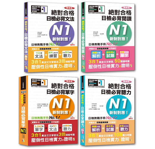 熟練「日檢N1熱銷套書」,「單字,文法,閱讀,聽力」一次就過關!