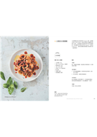 【美味法則3.醬汁是義大利麵的靈魂,但清炒也很好吃】在義大利,義大利麵屬於家庭日常料理,20個地區有各自的做法或醬汁配方,媽媽們主要依手邊食材發揮做成醬。對於在台灣習慣用顏色來分類義大麵料理的我們,Winnie老師在此書中不只教作番茄肉醬、青醬和奶油白醬那麼單一,她特意把食材廣度拉開,用紅色、白色、綠色、黑色為出發點找食材,悉心設計創意醬特殊配方,同時也細緻講解來自義大利家常經典醬及傳統醬做法,帶你體驗醬汁的迷人變化。