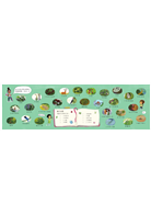 彩色精美雙面書衣,正面是原書插畫 ,背面是一份特別為小朋友設計的生態觀察學習單,收集了27種書中出現的動植物。請小朋友跟著主角去遠足,一路看、一路找,看這些動植物是出現在哪裡呢?透過好玩的找找看,就會認識許多動植物喔!還有,出門遠足、觀察生態,需要帶些什麼東西呢?這裡也有一份清單,讓小朋打勾確認喔。