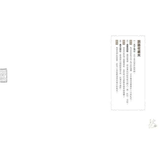 原典精選: 呈現與人物故事相關的原典片段,附上詳盡的語譯和簡要的注釋,藉此管窺全豹,提升古文的閱讀能力,亦可作為教學之用。