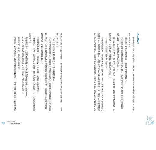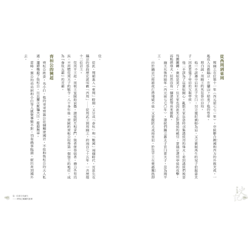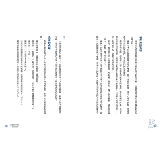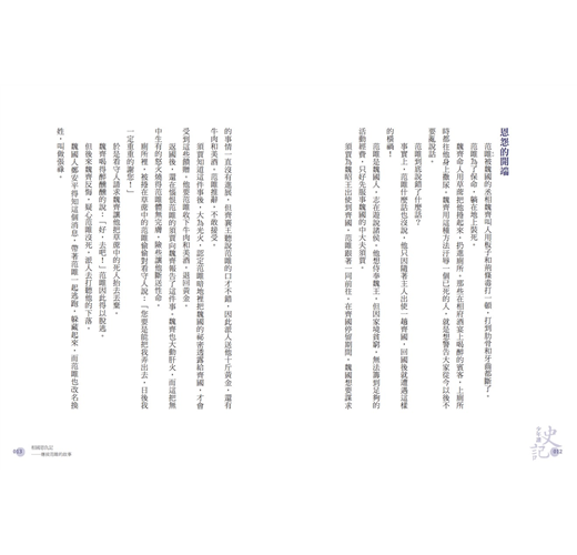 ●原典精選: 呈現與人物故事相關的原典片段,附上詳盡的語譯和簡要的注釋, 藉此管窺全豹,提升古文的閱讀能力,亦可作為教學之用。