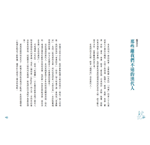 三年前一個夏天,和作家張嘉驊喝下午茶,聊聊他的寫作情形。聊到一半,不知怎的,我跟他提起很想編一套關於《史記》的書。嘉驊一聽,兩眼發亮,說:「你知道嗎,在眾多典籍中,我最愛的就是《史記》,有幾次讀著讀著,還淚流滿面呢。」接著他跟我分享鑽研《史記》的過程,提及家中書櫃就收集不少各種版本的《史記》專書。面對這樣忠實的司馬遷信徒,我真是樂壞了,當下就把這套書委託給他。