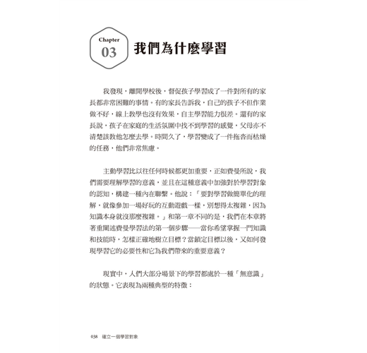本書的第二部分講述了運用費曼分析法的第一步:如何確立和鎖定學習目標。選擇要掌握的知識只是學習的第一個環節,同時,書中還討論了怎樣驗證學習一門知識的必要性,以幫助我們確立學習的邏輯,找到相對正確的方向。對於想在各個領域有所建樹的讀者來說,這都是一個非常重要的問題。