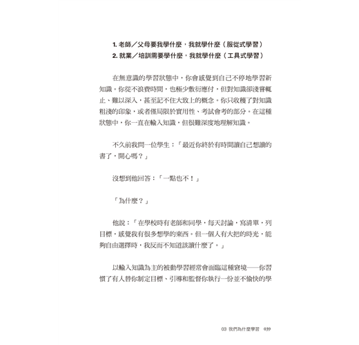 這個論點不僅針對一般的閱讀,也包括職業培訓、進修、團隊教育訓練等更為複雜的學習。走出學校你會發現,這種「學而不用」的情況比比皆是,大部分的學習純屬虛度光陰。