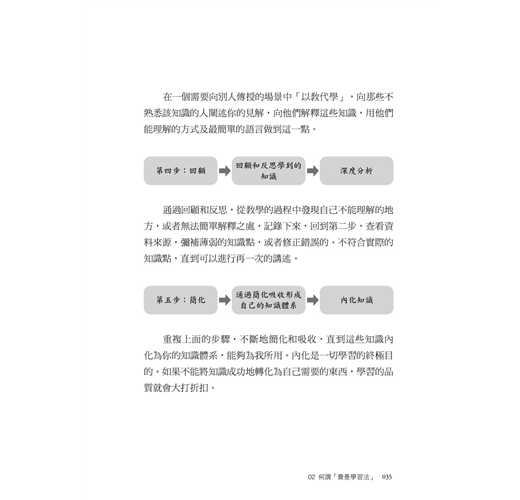它的核心思想是──當你準備學習一門新知識時,必須站在傳授者的立場,假設自己要向別人講解這門知識;那麼你一定要用最簡潔、清晰和易於理...