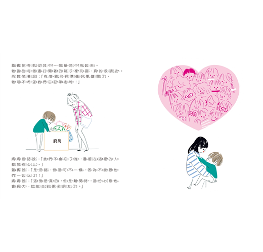 ★害羞是孩子面對新環境時很常見的反應,因為謹慎或缺乏自信而遲疑不前,就像「泡泡」一樣隔開了自己和外界。蓋賓的故事同理孩子的負面情緒,並分享正面經驗,以支持的力量取代過多的保護,建立孩子的安心感,邁出打開泡泡、探索世界的第一步。