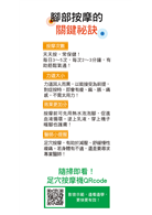 貼心設計圖大、字大的足穴掛圖,分成腳底、腳背、腳踝三大區塊,方便所有年齡層閱覽。隨時看,隨時按,全家都健康!搭配足穴按摩襪,按摩更精準。