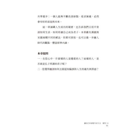 本書每一章的解釋中,皆有「章旨」、「本章重點」、「本章提問」三大特點,可幫助讀者在閱讀過程中發現重點、思考問題,不讓你有讀不到要領,想不出問題的困難。