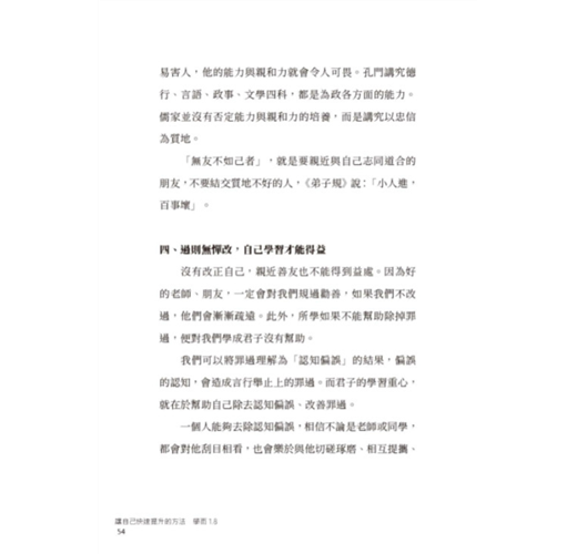 ●《論語》翔實地記載了孔子的談話,讀《論語》就是回到兩千多年前,與孔子直接面對面講話,原來這位老人家思想不偏激、不守舊、很民主還很幽默,腦袋裡充滿了今日大家公認的許多普世價值,談孔子,一定要屏除其他錯誤資訊的干擾,從《論語》正確地認識孔子原貌。