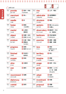 全書參照多數考生的學習狀況與習慣,精心規劃一週5天定量學習。為了避免在考場上發生「單字好眼熟,但意思想不起來」的扼腕情境,書中將單字、例句的中英文分開為左右兩欄,方便考生完全遮住中文,自我測驗,反覆確認自己的背誦狀況。每天進度亦設計「合格計分欄」,將字彙量視覺化,具體追蹤學習成果。