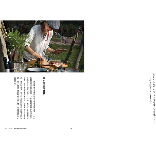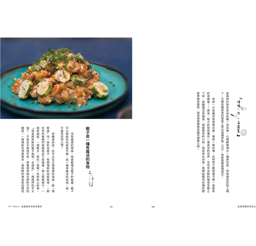 在那裡,我的腳ㄚ子泡在海水裡,在夕陽下用餐,餐桌上擺滿了食物:裝有烤香菇、櫛瓜、甜椒切片和油漬番茄的沙拉僅僅用胡椒和鹽巴調味;濃濃奶油香的煎鯛魚,還有各式各樣跟紅酒超搭的起司切片……這些我看到的、嘗過的、感覺到的每一個瞬間,就成了我的記憶,成為我生活的一部分,這就是我心目中「海洋的款待」了。