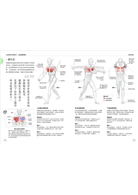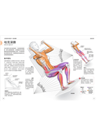 ● 精緻的運動解剖圖,搭配三種顏色分別標示各動作產生向心收縮、離心收縮、等長收縮的肌肉部位。
