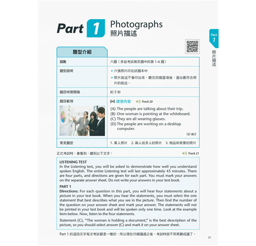 ‧歸納多益聽力各大題型與應考技巧,有助於迅速掌握應答訣竅