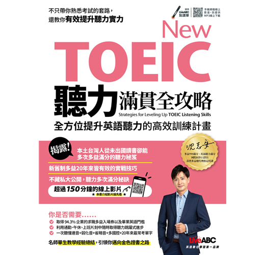 《New TOEIC聽力滿貫全攻略:全方位提升英語聽力的高效訓練計畫》是一本為專為多益考生所量身打造的新制多益參考書。本書特聘多次取得多益滿分的沈志安老師與LiveABC的專業編輯團隊共同合作,針對多益聽力測驗四個大題的各種題型,以最精簡、有效率的方式,循序漸進幫助讀者掌握應考技巧,以便奪取高分。此外,身為同步口譯和企業內訓講師的志安老師,也用影音講解親自分享了強效的聽力提升方法,讀者只要採取本書提供的方法與步驟善加練習,必能翻轉聽力理解能力。全書並提供點讀功能,讀者透過點讀可以輕鬆反覆聆聽,熟悉單字的正確發音,提升單字力,在考場上面對各類題目就可以從容不迫地應答。