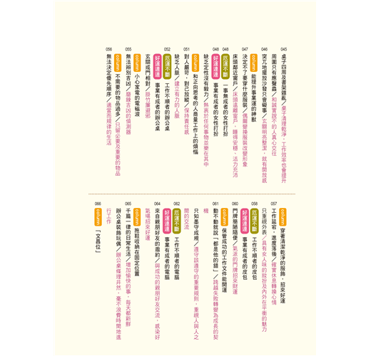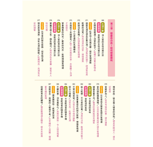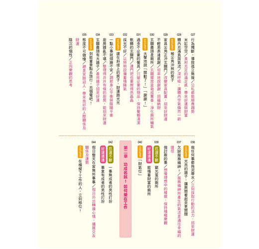 告訴讀者提升「財運」、「事業運」、「桃花運」等方面的訣竅,