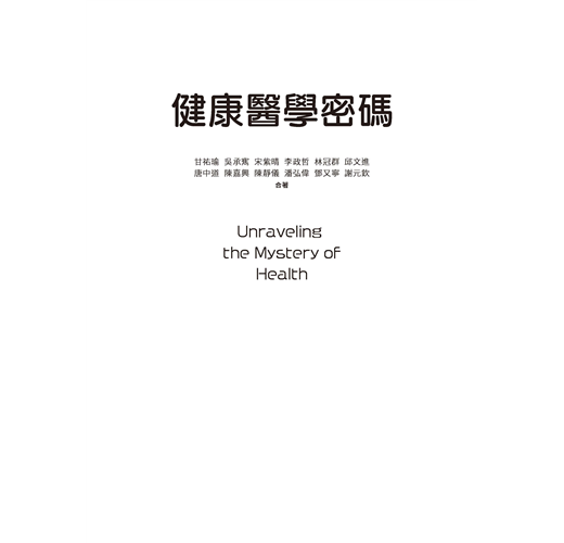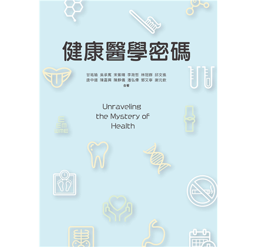 《健康醫學密碼》這本書是由本校醫學院優秀的教師群,凝聚二年的教學與實務經驗所匯集編寫而成的普及性健康知識書籍,本書涵蓋四大主軸及十大健康議題,架構嚴謹、層層推進、精彩紛呈,並結合生活情境來凸顯健康核心價值,我們希望本書的出版可以讓社會大眾更重視健康並用健康投資自己,創造更幸福的人生。