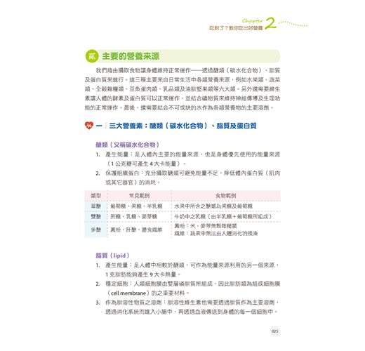 一、三大營養素:醣類(碳水化合物)、脂質及蛋白質