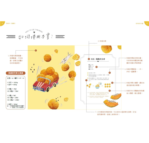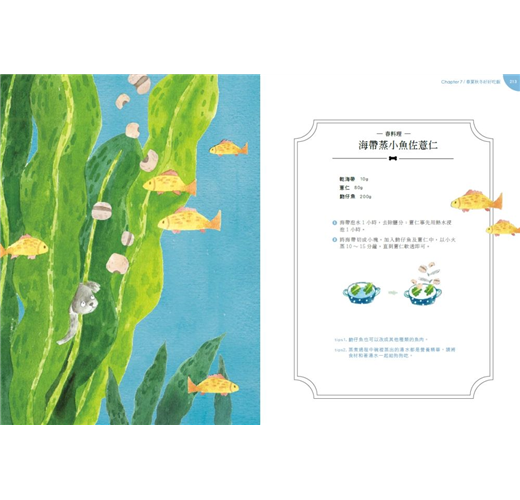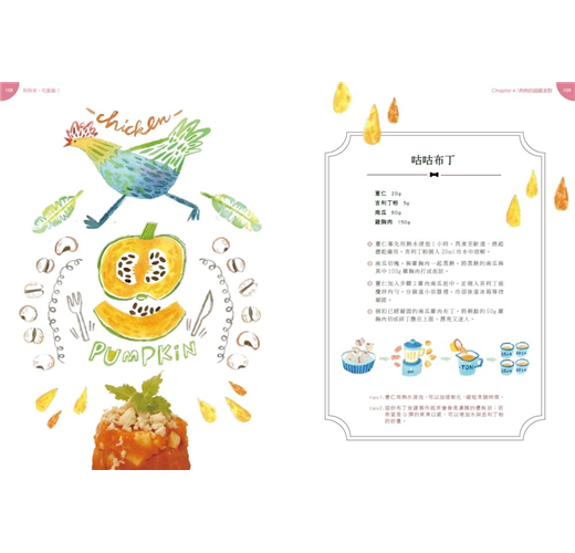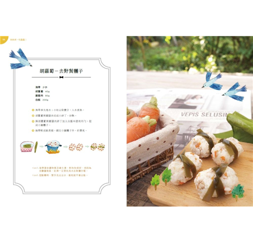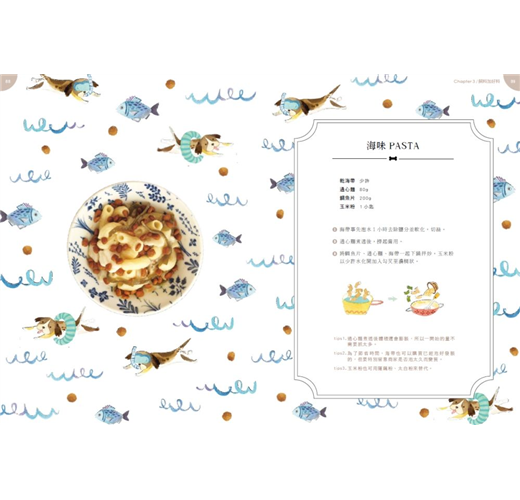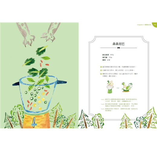 以柔美手繪插畫表現,鮮食照片穿插其中,
