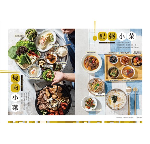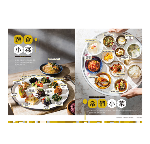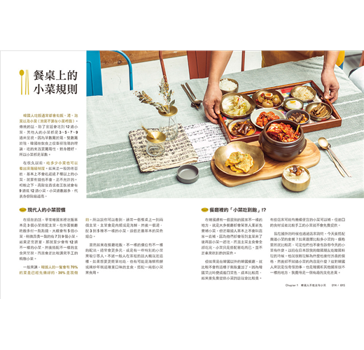 韓國小菜的多元與數量,是很多外國人到韓國吃飯時記憶最深刻的地方。小菜在韓國人的餐桌上佔有很大的比例,在韓國的飲食文化中,小菜會跟主菜一起配著吃,包著吃,所以繼《正韓食》,一本以主食為主軸的著作之後,我最想寫的內容就是韓式小菜了。