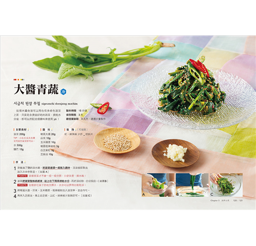 韓式小菜能做的款式太多,一本書也沒辦法寫完,所以這一本主要是教大家最經典最常見最簡單的小菜。有一些手工比較複雜,難度比較高,或是食材難取得的就沒有放入,尤其有些山菜野菜類的小菜,沒有當地的食材與調味料,很難完全複製出它的味道。同時你們也會發現這本書有不少素食,或是簡單變化就可以變成素食的小菜,讓吃素食的朋友也可以一起享用韓國小菜的美味。