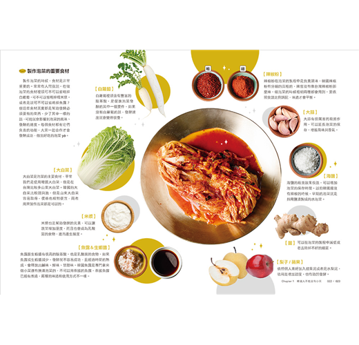 很多人對於泡菜(辛奇,Kimchi)有誤解,認為只有傳統發酵的泡菜才叫做Kimchi。但其實Kimchi有非常多的種類,所以這次我也特別分類出需要發酵以及不需要發酵的作法。另外,因為我發現有很多朋友想要更了解韓食的文化,對於Kimchi也有很多好奇的地方,所以我把很多關於韓食的故事、Kimchi的製作、發酵理論,都拿出來在書中和大家探討與說明。這也可以用來解釋為什麼泡菜食譜裡有些食材不能少,而有些調整也沒有關係,不會影響發酵。