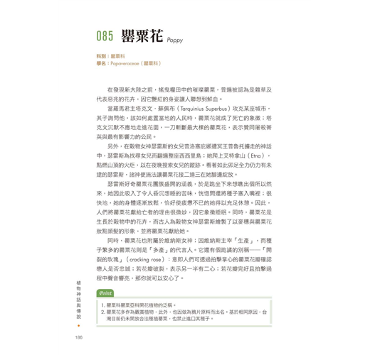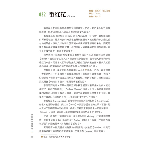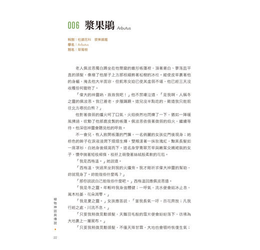 ◎以一頁文字、一頁圖片的形式呈現,一次欣賞101種花草木果,立刻走進引人入勝、奇妙浪漫的傳說世界